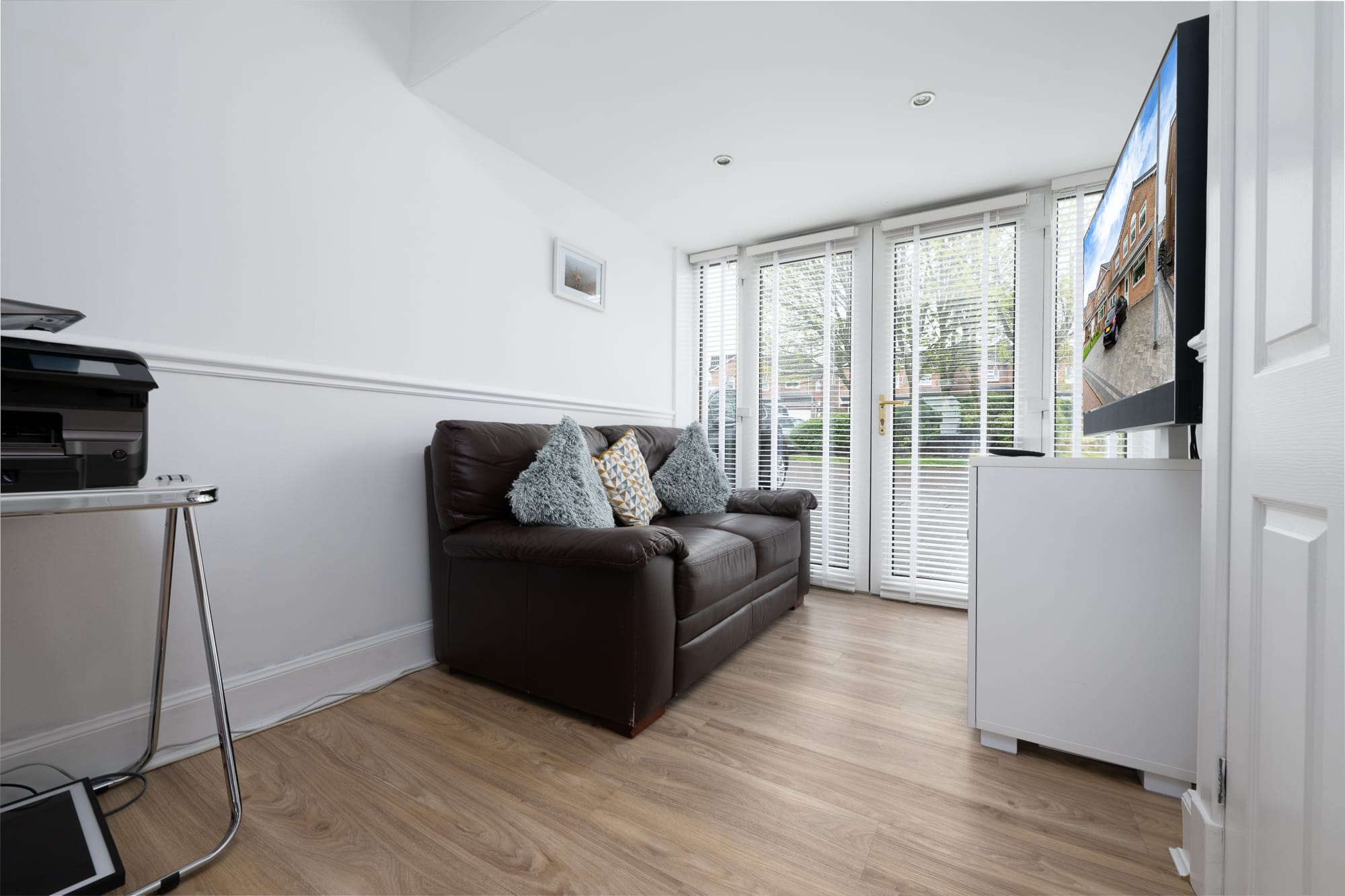 The dedicated dining room is bright and welcoming, positioned to the front of the home and ideal for everything from everyday meals to more formal entertaining. Meanwhile, the former garage has been thoughtfully converted into an additional reception room, currently used as a cosy second lounge or snug. This flexible space offers excellent potential as a fifth bedroom, home office, or playroom—tailored to suit your family’s changing needs.